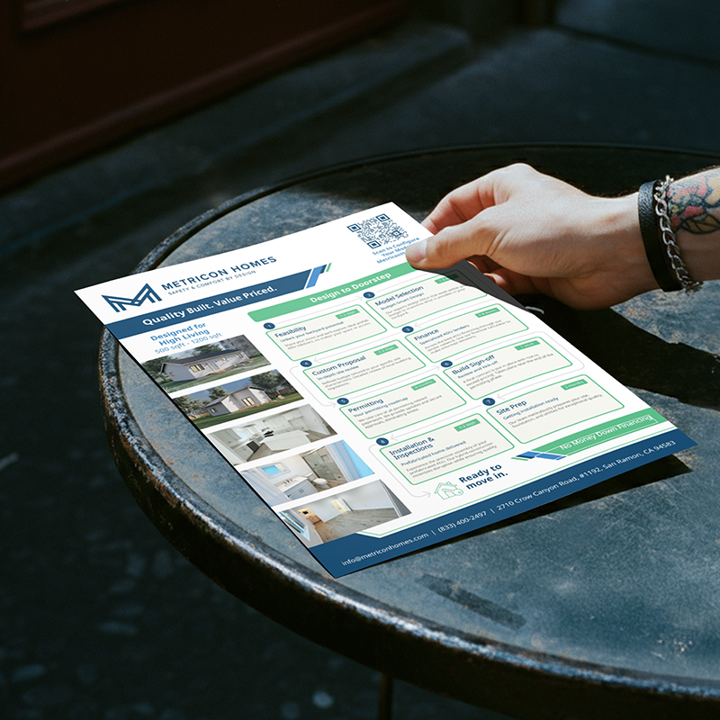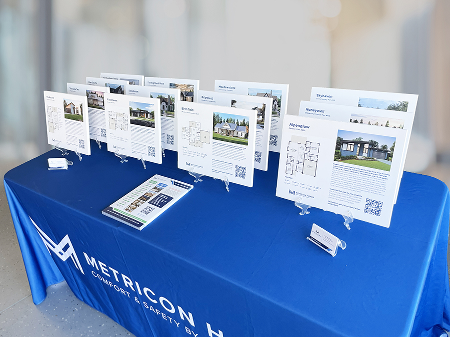 The retractable banner should serve as a strong vertical anchor that reinforces the brand story and core benefits, while the home design boards should present floor plans, exterior imagery, and concise descriptions in a clear, organized, and visually engaging format. Each component should support quick comprehension, spark conversation, and help potential clients visualize how Metricon’s custom homes can meet their needs.